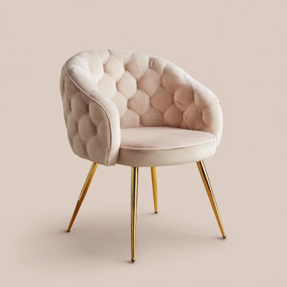 Esszimmerstuhl Samtpolsterung – 60x60x85 cm – Beige – Luxuriöses Design