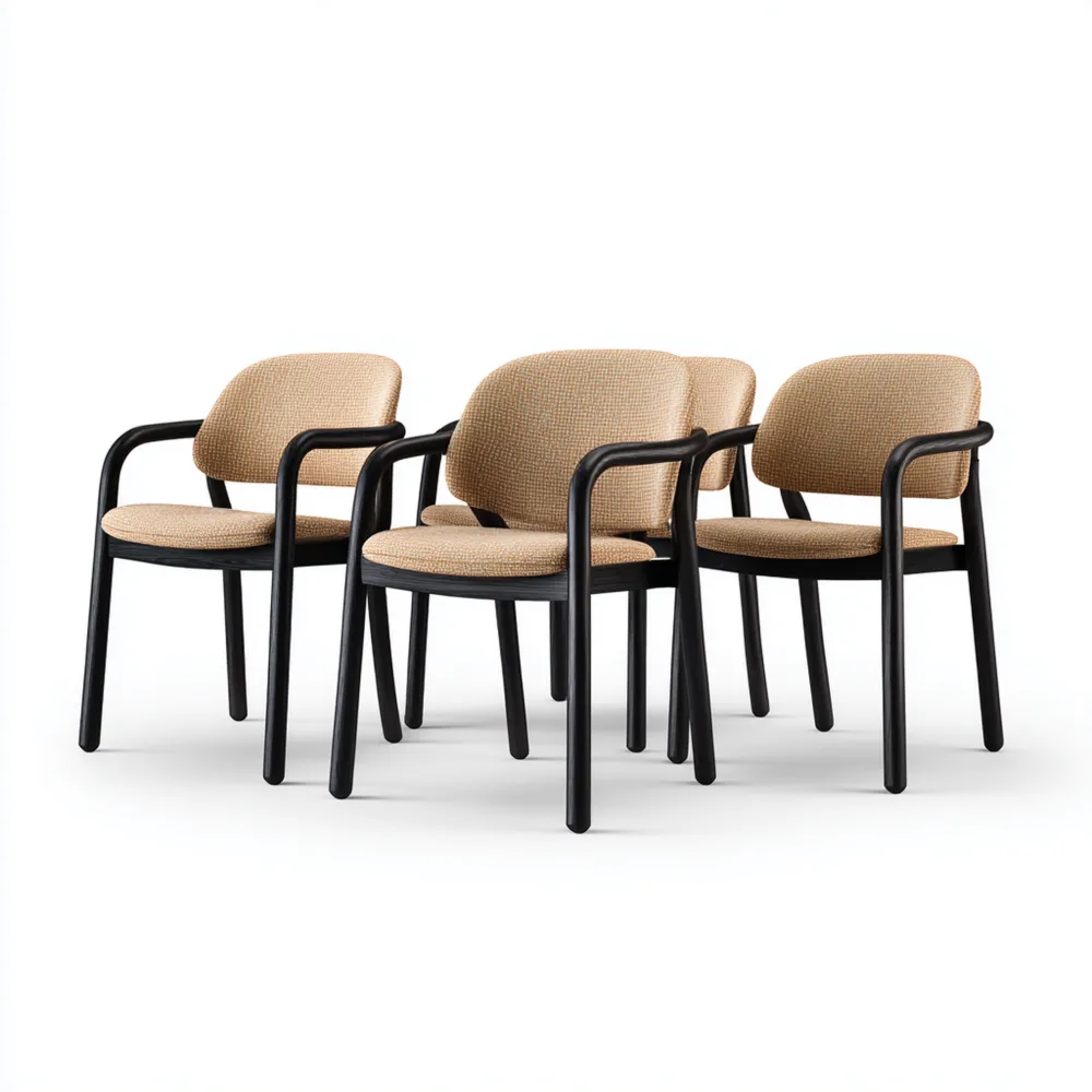 Esszimmerstuhl Set - Stoffpolsterung 55x50x80 cm - Beige/Schwarz - Modernes Design
